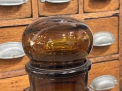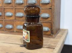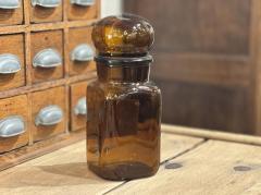 ぽってりとした丸い蓋がステキなアンバーガラスの瓶。