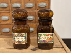 フランスアンティーク アンバーガラス瓶 DÉCAFÉINÉ