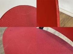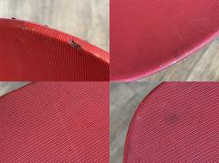 鮮やかな赤色のビニールレザーが空間を明るく彩り