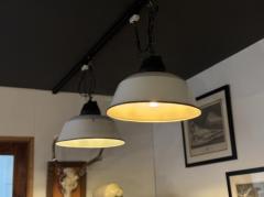 シンプルな白い琺瑯シェードは空間に馴染みやすく